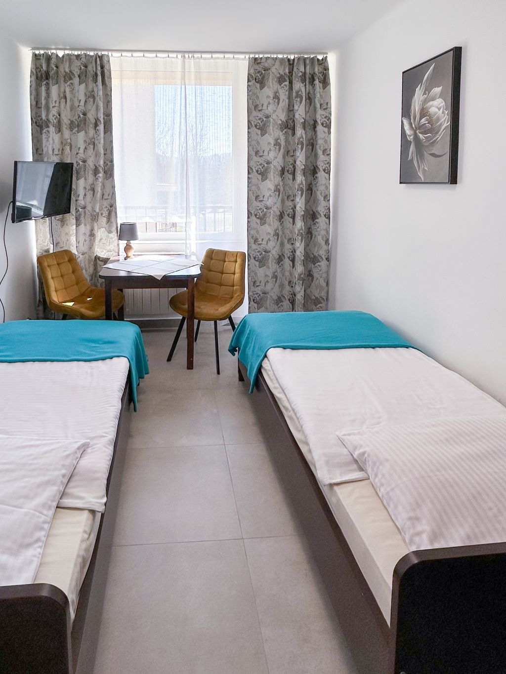 - noclegi w pokojach z łazienką, TV, czajnikiem bezprzewodowym i balkonem